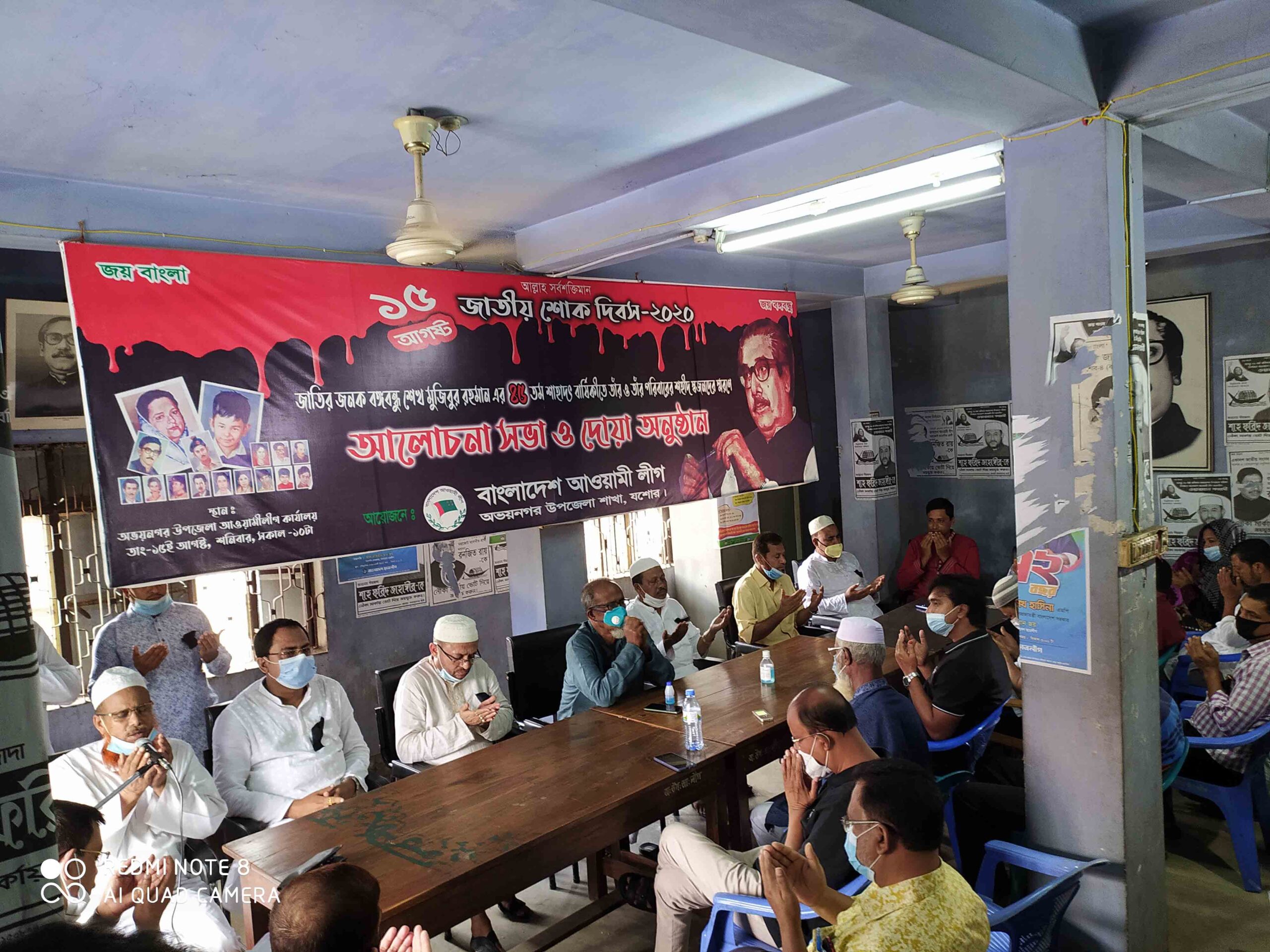 স্টাফ রিপোর্টার : অভয়নগর উপজেলার সর্বত্র যথাযোগ্য মর্যাদায় জাতির জনক বঙ্গবন্ধু শেখ মুজিবুর রহমানের ৪৫তম শাহাদাত বার্ষিকী পালিত হয়েছে। এ উপলক্ষে উপজেলা প্রশাসনের উদ্যোগে সকাল ১০টায় উপজেলা পরিষদ চত্বরে অবস্থিত জাতির জনকের মুরালে পুষ্পার্ঘ্য অর্পণ করা হয়। এর পর উপজেলা পরিষদ মিলানায়তনে ১৫ আগষ্টে নির্মম হত্যার শিকার সকলের আত্মার মাগফেরাত কামনা করে দোয়া মাহফিল অনুষ্ঠিত হয়। এর আগে বঙ্গবন্ধুর জীবনি ও কর্মযোগ্যের উপর আলোচনা সভায় সভাপত্বি করেন, উপজেলা নির্বাহী কর্মকর্তা নাজমুল হুসেইন খাঁন। সভায় প্রধান অতিথির বক্তব্য রাখেন উপজেলা চেয়ারম্যান শাহ ফরিদ জাহাঙ্গীর। এ ছাড়া অন্যান্যর মধ্যে বক্তব্য রাখেন, উপজেলা ভাইস চেয়ারম্যান মিনারা পারভীন, উপজেলা সহকারি কমিশনার (ভূমি) কে এম রফিকুল ইসলাম, থানার অফিসার ইনচার্য (তদন্ত) মিলন কুমার মন্ডল প্রমুখ। আলোচনা শেষে শিশু কিশোরদের অংশগ্রহনে চিত্রাংকন, রচনা, কবিতা প্রতিযোগিতা ও পুরষ্কার বিতরন করা হয়। উপজেলা আ.লীগ ও তার অন্যান্য অঙ্গ সংগঠনের উদ্যোগে আলোচনা সভা ও দোয়া মাহফিল অনুুষ্ঠত হয়। এবং সকল শিক্ষাপ্রতিষ্ঠনে যথাযোগ্য মর্যাদায় দিবসটি পালন উপক্ষে অনরুপ আয়োজন করে।