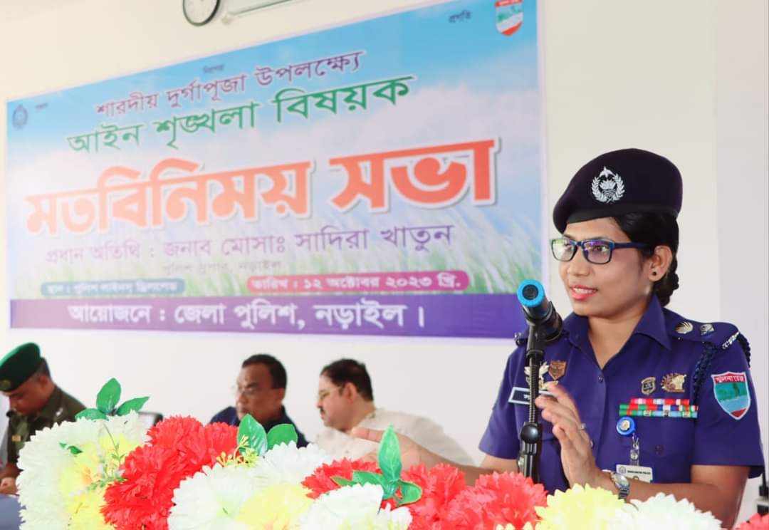 মতবিনিময়ের শুরুতে পুলিশ সুপার মহোদয় সকলকে শারদীয় শুভেচ্ছা ও অভিনন্দন জানান এবং পূজা উদযাপন বিষয়ে পূর্বপ্রস্তুতি ও গৃহীত ব্যবস্থা সম্পর্কে সকলের মতামত শোনেন। পুলিশ সুপার মহোদয় বলেন, আইন শৃঙ্খলা রক্ষায় এবং জনগণের জানমালের নিরাপত্তা নিশ্চিত করতে নড়াইল জেলা পুলিশ সর্বদা আপনাদের পাশে রয়েছে এবং থাকবে। তিনি সাম্প্রদায়িক সম্প্রীতি ও ভাতৃত্ববোধ বজায় রেখে সরকারি সকল নির্দেশনা যথাযথভাবে অনুসরণ করে শান্তিপূর্ণভাবে দুর্গোৎসব উদযাপন করতে এবং স্বরাষ্ট্র মন্ত্রণালয়ের পূজার নিরাপত্তা বিষয়ে সকল নির্দেশনাসমূহ পালন করতে পুলিশ ও তৃণমূল পর্যায়ে সকলকে আহবান জানান।