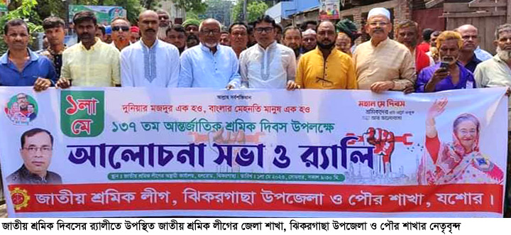 যশোরের ঝিকরগাছায় জাতীয় শ্রমিক লীগের উপজেলা শাখা ও পৌর শাখার উদ্যোগে ১৩৭তম আন্তর্জাতিক শ্রমিক দিবস উপলক্ষে র্যালী, আলোচনা সভা ও দোয়া মাহফিল অনুষ্ঠানের আয়োজন করা হয়। সোমবার (১লা মে) সকাল ১১টায় হল রোডস্থ জাতীয় শ্রমিক লীগের উপজেলা শাখার অস্থায়ী কার্যালয়ের জাতীয় শ্রমিক লীগের উপজেলা শাখার আহবায়ক জাহাঙ্গীর সরদারের সভাপতিত্বে ও যুগ্ম আহবায়ক মোঃ মাহাবুর হাসান বরি’র সঞ্চালনায় অনুষ্ঠানে ভিডিও কনফারেন্সেরের মাধ্যমে প্রধান অতিথির বক্তব্য রাখেন যশোর-২ (চৌগাছা-ঝিকরগাছা) আসনের জাতীয় সংসদ সদস্য বীর মুক্তিযোদ্ধা মেজর জেনারেল (অব:) ডা: অধ্যাপক মোঃ নাসির উদ্দিন।