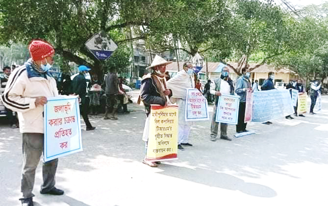 কিন্তু সারা বিশ্বের ন্যায় বাংলাদেশেও অতি সংক্রমণশীল করোনার ভ্যারিয়েন্ট ওমিক্রন ছড়িয়ে পড়ার আশঙ্কা দেখা দেওয়ায় ও সরকার ঘোষিত বিধি নিষেধ এবং দেশ ও দেশের জনগণের সার্বিক কল্যাণের কথা বিবেচনা আজ ১৩ ডিসেম্বর ( বৃহস্পতিবার) দুপুর ১২ ঘটিকা থেকে ২ ঘটিকা পর্যন্ত ডিসি অফিস চত্বরে করোনার বিধি নিষেধ মেনে, সামাজিক দূরত্ব বজায় রেখে স্বল্প পরিসরে ব্যানার,ফেস্টুন নিয়ে কয়েকশত ভুক্তভোগী জনগণ অবস্থান কর্মসূচিতে অংশ গ্রহন করেন।