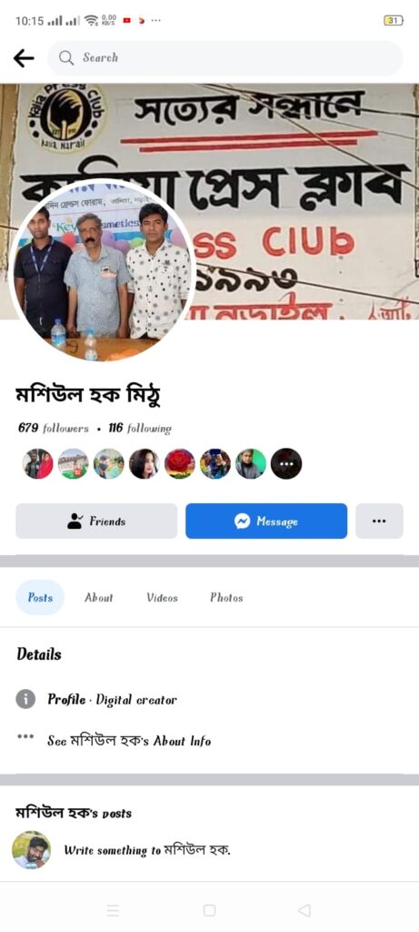 অজ্ঞাতনামা একটি প্রতারক চক্র “মশিউল হক মিঠু” নামে একটি ভূয়া ফেসবুক