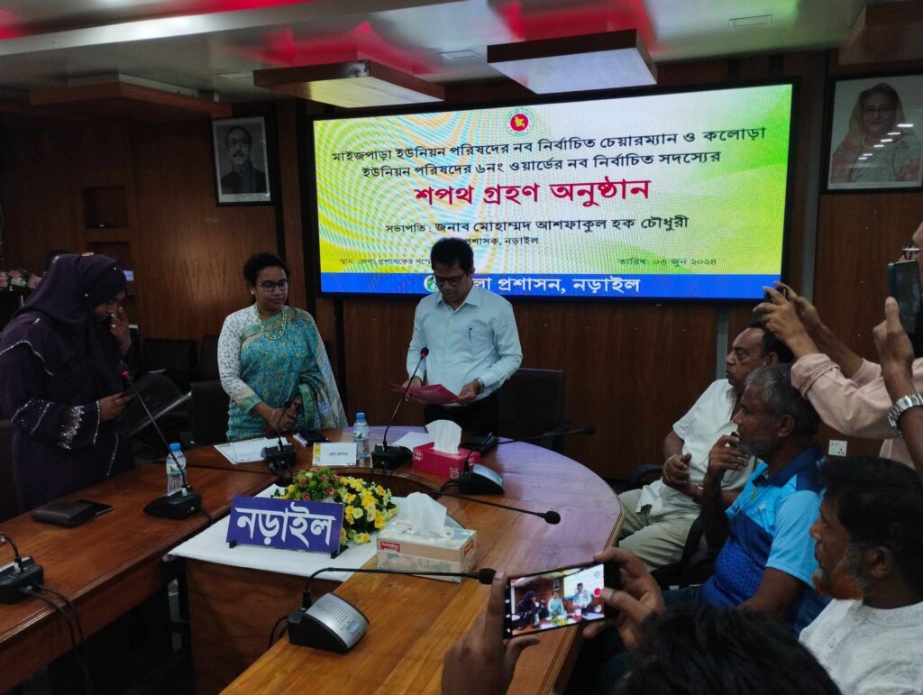 নড়াইল সদর উপজেলার মাইজপাড়া ইউনিয়ন পরিষদের নবনির্বাচিত চেয়ারম্যান সফুরা খাতুন বেলী শপথ গ্রহণ করেছেন। সোমবার (৩জুন) দুপুরে নড়াইল জেলা প্রশাসকের সম্মেলন কক্ষে তিনি শপথ গ্রহণ করেন। শপথবাক্য পাঠ করান নড়াইল জেলা প্রশাসক মোহাম্মদ আশফাকুল হক চৌধুরী। এসময় নড়াইল জেলা প্রশাসকের কার্যালয়ের স্থানীয় সরকার বিভাগের উপ-পরিচালক জুলিয়া শুকায়না, সদর উপজেলা পরিষদের নবনির্বাচিত চেয়ারম্যান আজিজুর রহমান ভূইয়া, সাবেক পৌর কাউন্সিলর সাইফুল ইসলাম সহ ইউনিয়ন পরিষদের সদস্য সহ সুশীল সমাজের প্রতিনিধিরা উপস্থিত ছিলেন। গত ২৮ মে মাইজপাড় ইউনিয়ন পরিষদের উপ-নির্বাচনে সফুরা খাতুন বেলী চেয়ারম্যান নির্বাচিত হন। গত ৫ ফেব্রুয়ারী নবনির্বাচিত চেয়ারম্যানর স্বামী জসিম মোল্যা হৃদরোগে আক্রান্ত হয়ে মৃত্যুবরণ করেন।