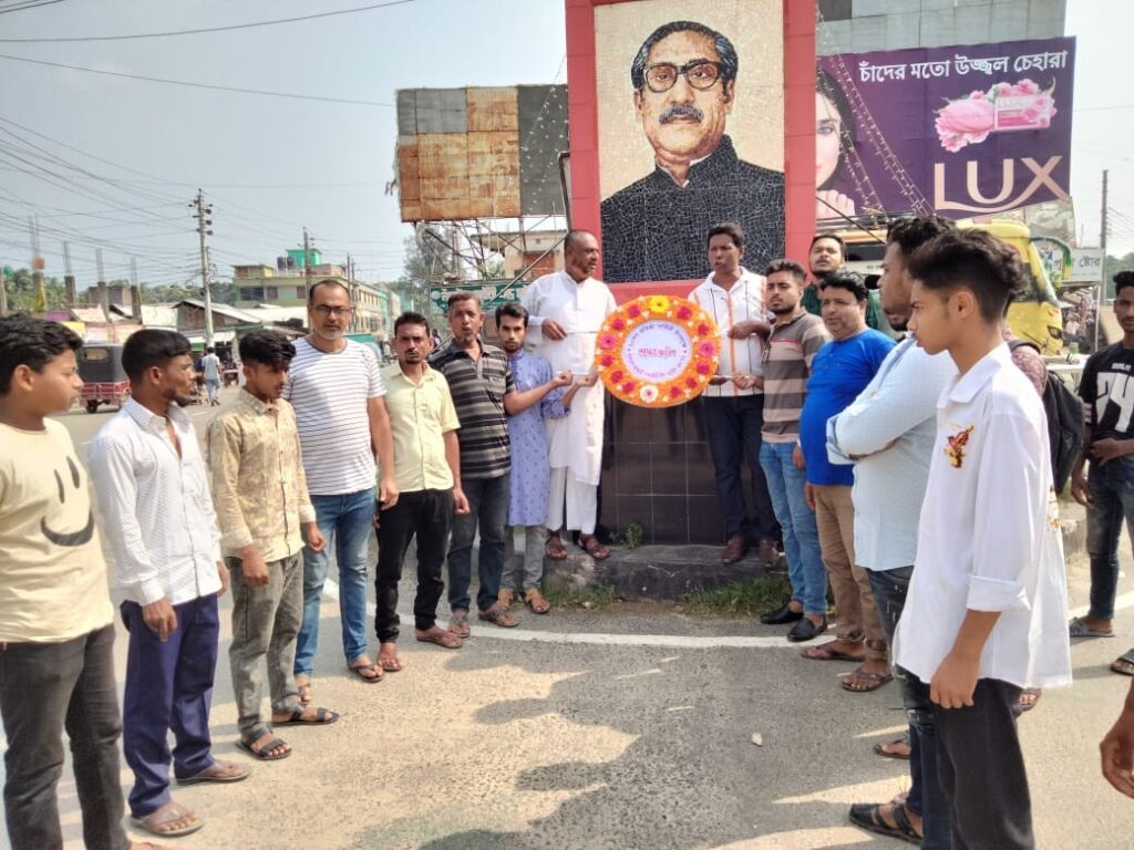 আয়োজনে শহরের পুরাতন বাসটামির্নাল চত্বরে বঙ্গবন্ধুর মুর্যালে
