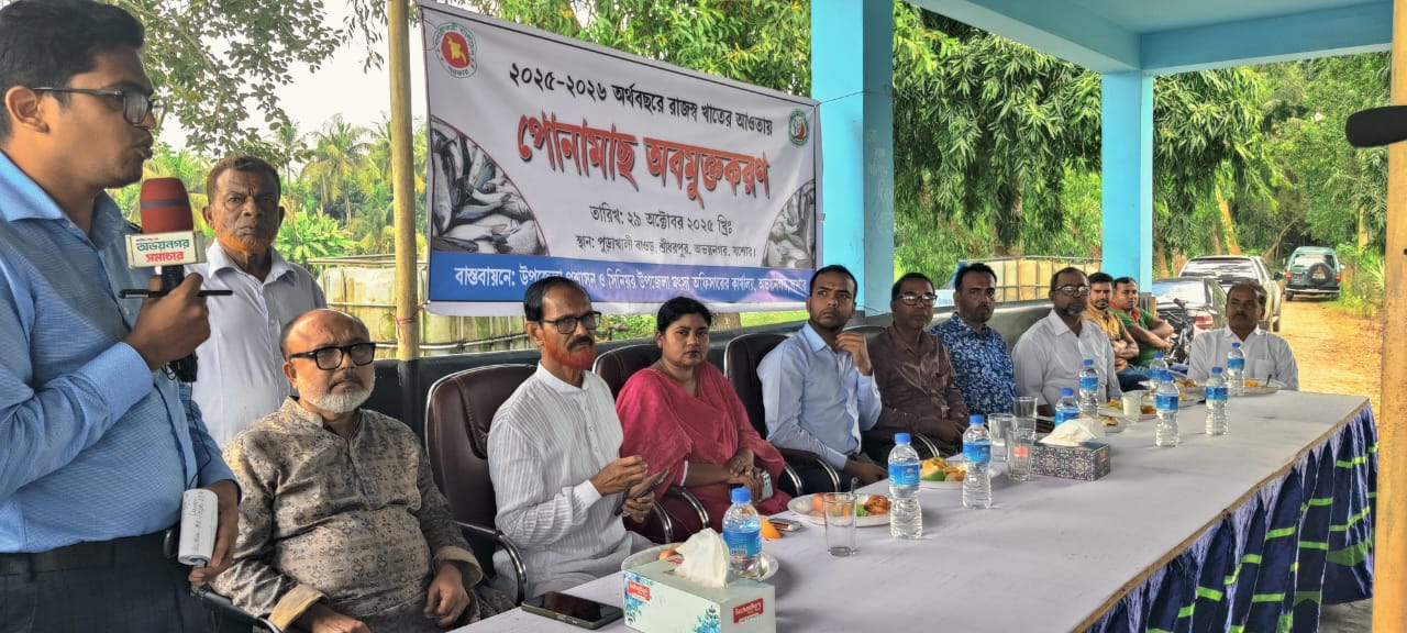 যশোরের অভয়নগর উপজেলায় মৎস্য খাতের ২০২৫-২৬ অর্থ বছরের রাজস্ব বাজেটের আওতায় উন্মুক্ত জলাশয়, বর্ষা প্লাবিত ধানক্ষেত, প্রাতিষ্ঠানিক জলাশয়ে পোনামাছ অবমুক্তকরন কর্মসূচির আওতায় পুড়াখালি বাওড়ে ৫৫৫.৫৬ কজি কার্প জাতীয় মাছের পোনা অবমুক্ত করা হয়েছে।