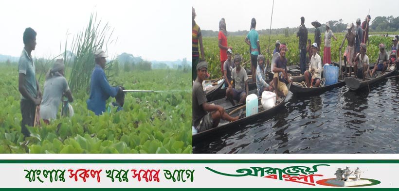 অভয়নগর উপজেলার সুন্দলী ইউনিয়নের বিল ঝিকরায় স্বেচ্ছাশ্রমের মাধ্যমে শেওলা অপসরণ কর্মসূচী হাতে নিয়েছে বিলের পার্শবর্তী গ্রামবাসী। আড়পাড়া মাধ্যমিক বিদ্যালয়ের সভাপতি স্বপন সরকারের নেতৃত্বে গতকাল শুক্রবার সকালে প্রায় শতাধিক লোকের উপস্থিতিতে এই কর্মসূচী শুরু হয়। ধারাবাহিক ভাবে এই কার্যক্রম চলবে বিল থেকে শেওলা সম্পূর্ণরূপে অপসরণ না হওয়া পর্যন্ত। জলের ভেতর নৌকায় করে স্প্রে মেশিনের সহায়তায় বিলের শতশত বিঘা জমিতে শেওলা মারার বিষ স্প্রে করা হয়। পরামর্শক হিসেবে এসময় শেওলা অপসরণ কর্মসূচীতে উপস্থিত ছিলেন সুন্দলী ইউনিয়ন পরিষদ চেয়ারম্যান বিকাশ রায় কপিল, বাংলাদেশ আওয়ামীলীগ সুন্দলী ইউনিয়ন শাখা অধীর কুমার পাঁড়ে, সাধারণ সম্পাদক পরিতোষ বিশ্বাস, যুগ্ম সাধারণ সম্পাদক দীনেশ বিশ্বাস ও সমীরণ সরকার, ইউনিয়ন যুবলীগ সভাপতি প্রজিত বিশ্বাস বুলেট, বিবেকানন্দ যুব সংঘের সাধারন সম্পাদক মিন্টু কুমার রায়, সুন্দলী ইউনিয়ন স্বেচ্ছাসেবকলীগের সাধারণ সম্পাদক শ্যামল রায়, ইউপি সদস্য অপূর্ব লাল ধর, তুষার কান্তি বিশ্বাস, স্বেচ্ছাসেবক বিকাশ মল্লিক, গ্রাম ডাক্তার অরুন, সুমন্ত রায় প্রমূখ। ভবদহ কবলিত এলাকার দুর্ভোগের কথা চিন্তা করে এই উদ্যোগ গ্রহন করে কিছু হৃদয়বান ব্যাক্তি। শেওলা অপসরণ সম্পূর্ণ হলে এলাকার দারিদ্রতা লাঘবে সরকারি ভাবে বিলে মৎস উন্মুক্ত করণের মাধ্যমে মৎস অধিদপ্তরের নিকট থেকে সহায়তা চেয়েছেন এলাকার সাধারণ মানুষ।