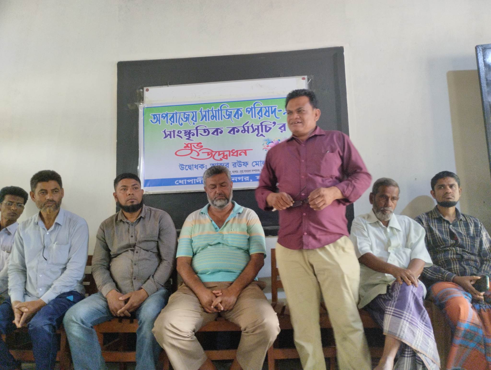 সুস্থ্য ভাবে শিশুর মানষিক বিকাশে সহায়ক হিসাবে সাংস্কৃতিক কর্মকান্ড গুরুত্বপূর্ণ ভূমিকা রাখে। এই লক্ষকে সামনে রেখে অভয়নগর উপজেলার ধোপাদী গ্রামে কতিপয় সামাজিক ব্যক্তিবর্গের উদ্যোগে যাত্রা শুরু হলো অপরাজেয় সামাজিক পরিষদ’র সাংস্কৃতিক কর্মকান্ড। শুক্রবার(১০/৩/২৩) সাকালে ধোপাদী ফুটবল এ্যকাডেমি ভবনে সংগঠনের সামাজিক কর্মকান্ডের যৌথভাবে শুভ উদ্বোধন ঘোষণা করেন যশোর জেলা পরিষদের সদস্য ও অভয়নগর উপজেলা আ.লীগের যুগ্মসাধারণ সম্পাদক আব্দুর রউফ মোল্যা ও নওয়াপাড়া পৌরসভার ৩নং ওয়ার্ড কাউন্সিলর , উপজেলা যুবলীগের আহবায়ক মো: তালিম হোসেন।