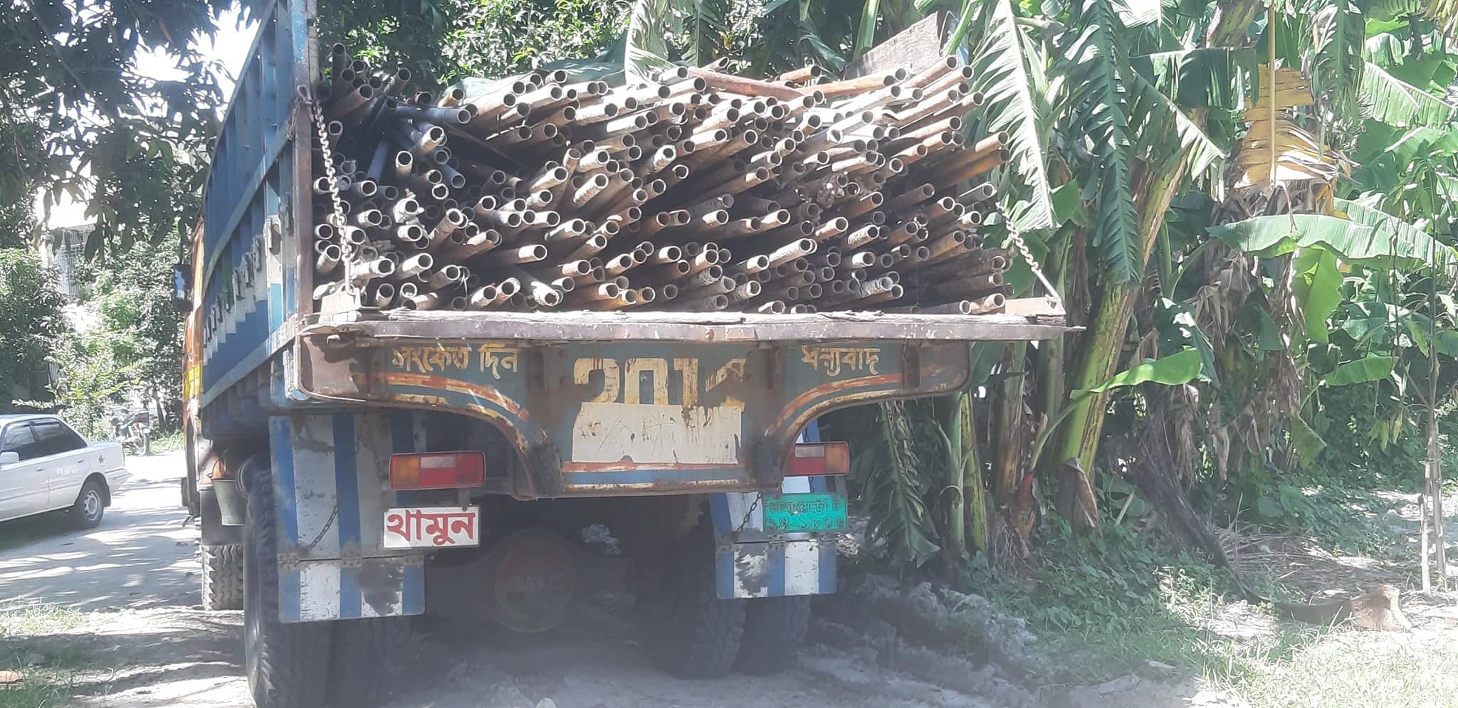 অভয়নগরে লোহার পাইপসহ ৩ টি ট্রাক আটক করেছে থানা পুলিশ। বুধবার বেলা ১১ টার সময় এই লোহার পাইপসহ ৩ টি ট্রাক আটক করা হয়। পুলিশ জানায়, বেনাপোল থেকে ছেড়ে আসা অবৈধ্যভাবে লোহার পাইপসহ খুলনাগামী ঢাকা মেট্রো ট ১৪-৪১-৯৪ , ঢাকা মেট্রো ট ১৪-১৮-০৬ ও একটি পিকাপ গাড়ি অভয়নগর উপজেলায় প্রবেশ করে। গোপন সংবাদের ভিত্তিতে থানা পুলিশে চৌকস টিম এই গাড়িসহ মালামাল আটক করা হয়। পরে জব্দকৃত গাড়ি ও লোহার পাইপ থানায় হেফাজাতে রাখা হয়েছে। পুলিশ এখনো সঠিক তথ্য দিতে পারেনি। সন্ধায় এ বিষয় একটি মামলা দায়ের করা হয় মামলা নং ২৬ বলে জানিয়েছেন থানার তদন্ত ওসি মিলন কুমার মন্ডল ।