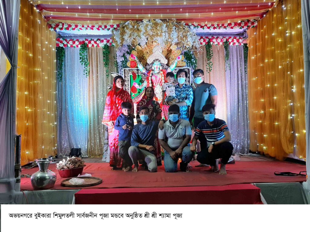 স্টাফ রিপোর্টার: বাংঙ্গালী সোনাতন ধর্মাবলম্বীদের দ্বিতীয় বৃহত্তম উৎসব শ্রী শ্রী শ্যামা পূজা। আজ (১৪/১১/২০২০) শনিবার দিবাগত রাত ১১ টা থেকে শুরু হবে পূজার আয়োজন এবং তা চলবে রাত তিনটা পর্যন্ত। মন্ত্রপাঠের মাধ্যমে শুরু হবে দেবীর আরাধোনা। পরে অঞ্জলি ও প্রসাদ বিতরণের মাধ্যমে শেষ হবে পূজার কার্যক্রম। অভয়নগরে প্রায় এক হাজার মন্ডবে অনুষ্ঠিত হচ্ছে এ পূজা। পূজায় নিরাপত্তার জন্য থাকছে আইনশৃঙ্খলা বাহিনীর সদস্য। মন্ডবে স্বাস্থ্য বিধি মেনে সকল কার্যক্রম চলবে। থানার অফিসার ইনচার্য মো: তাজুল ইসলাম জানান, স্বাস্থ্য বিধি না মানলে আইনানুগ ব্যবস্থা নেওয়া হবে। বুইকারা শিমুলতলী সার্বজনীন পূজা মন্ডবের সভাপতি শুকুমার কুন্ড ও সহসভাপতি লিটন মন্ডল বলেন, এ বছর করোনার কারনে অনুষ্ঠান সংক্ষিপ্ত করা হয়েছে। মন্ডবে স্বাস্থ্য বিধি ও শারীরিক দূরাত্ব বজায় রেখে সকল কার্যক্রম চলবে।