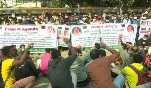 মঙ্গলবার দুপুর থেকে পররাষ্ট্রমন্ত্রণালয়ের সামনে বিক্ষোভরত শ্রমিকদের অভিযোগ, করোনা সংক্রমণের ভয়াবহতা কমে আসার পর থেকে বিশ্বের অন্যান্য দেশের শ্রমিকদের কাতারে কাজে ফেরাতে নিজ নিজ দেশের সরকার উদ্যোগ নিলেও বাংলাদেশে তা করা হয়নি। এমন অবস্থায় জীবিকার প্রয়োজনে কাতার ফেরা নিয়ে অনিশ্চয়তায় পড়েছেন শ্রমিকরা।