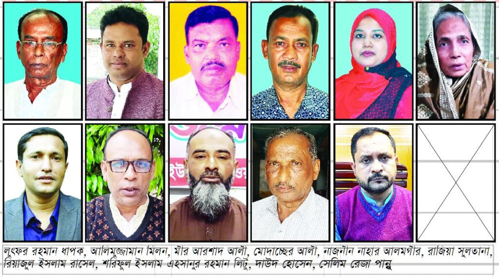 হাটশ-হরিপুর শম্পা মাহমুদ, বটতৈল এম এ মোমিন মন্ডল, আলামপুর আব্দুল হান্নান, আইলচারা মোতালেব হোসেন, উজানগ্রাম সাবুবিন ইসলাম, হরিনারায়নপুর মো. মহিউদ্দিন, পাটিকাবাড়ি সাইদুর রহমান, ঝাউদিয়া জহুরুল ইসলাম, আব্দালপুর আরব আলী, মনোহরদিয়া শহিদুল ইসলাম এবং গোস্বামীদূর্গাপুর লাল্টু মিয়া।