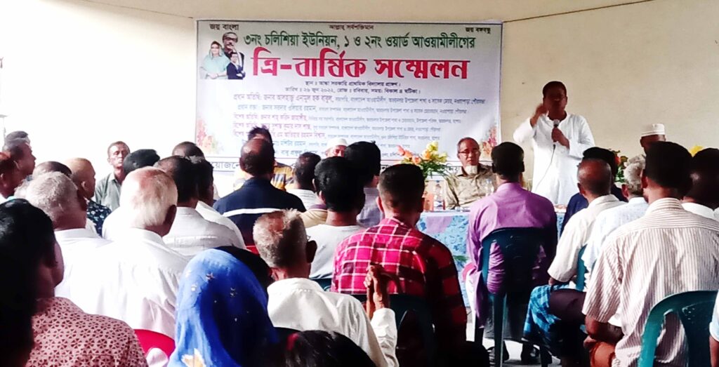 যশোরের অভয়নগর উপজেলার ৩ নং চলিশিয়া ইউনিয়নের ১ ও ২ নং ওয়ার্ড আওয়ামীলীগের ত্রি বার্ষিক সম্মেলন অনুষ্ঠিত হয়েছে। গতকাল রবিবার বিকাল ৪ টায় আন্ধা প্রাথমিক বিদ্যালয় প্রাঙ্গনে এ সম্মেলন অনুষ্ঠিত হয়। বাবু দিপক কুমার রায়ের সঞ্চালনায় ১ নং ওয়ার্ড আওয়ামীলীগের সভাপতি প্রফুল্ল রায়ের সভাপতিত্বে উক্ত অনুষ্ঠানে বক্তব্য রাখেন, অভয়নগর উপজেলা আওয়ামীলীগের সভাপতি আলহাজ্ব এনামুল হক বাবুল, সাধারণ সম্পাদক সরদার ওলিয়ার রহমান, উপজেলা পরিষদের ভাইস চেয়ারম্যান আক্তারুজ্জামান তারু, ৩ নং চলিশিয়া ইউনিয়ন আওয়ামীলীগের সভাপতি মোঃ মশিউর রহমান, সাধারন সম্পাদক বি এম আতিয়ার রহমান বিশ্বাস সহ স্থানীয় আওয়ামীলীগ ও অংগ- সংগঠনের নেতৃবৃন্দ। অলোচনা শেষে নেতৃবৃন্দ উপস্থিত নেতা কর্মীদের সাথে সার্বিক দিক বিবেচনা করে প্রফুল্ল রায়কে সভাপতি ও অনিমেষ বিশ্বাসকে সাধারণ সম্পাদক করে ১ নং ওয়ার্ড আওয়ামীলীগ ও আফজাল ফকিরকে সভাপতি ও সমর মল্লিককে সাধারণ সম্পাদক করে ২ নং ওয়ার্ড আওয়ামীলীগের কমিটি ঘোষণা করেন।