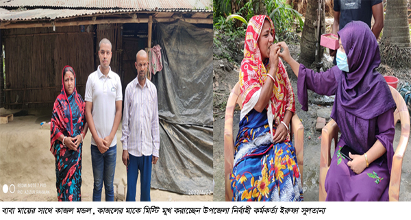 শনিবার উপজেলা নির্বাহী কর্মকর্তা ইরুফা সুলতানা মিস্টি নিয়ে তার বাড়িতে গেলে কাজলের মা রেবা রাণি মন্ডল বারবার আপ্লুত হয়ে কেঁদে ফেলছিলেন। এসময় কাজলের অন্যের খেতে কাজ করছিলেন। কাজলের মা রেবা মন্ডল ইউএনওকে বলেন, অনেক কষ্ট করে এই পর্যন্ত নিয়ে এসেছি। এখন আপনারা একটু সহযোগিতা করলে…. বলতে বলতে আবারও কেঁদে ফেলেন। এসময় উপজেলা নির্বাহী কর্মকর্তা তাকে সাহস দিয়ে বলেন, কোন অবস্থাতেই ভেঙে পড়বেন না। আমিসহ উপজেলা ও জেলা প্রশাসন আপনার পাশে আছে। আপনি একজন রতœগর্ভা মা।