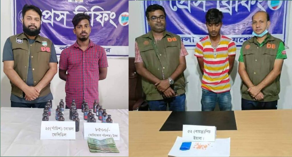 অপরদিকে, ডিবি’র এস আই ইদ্রিসুর ও এস আই নিতাই চন্দ্র দাশসহ আরেকটি টিম শুক্রবার সন্ধ্যা ৭ টার পর চৌগাছা পুড়াপাড়া খালপাড়াস্থ পুড়াপাড়া থেকে শাহপুর গামী রোডের বাহার মিয়ার ধানী জমির সামনে থেকে রাব্বি রহমানকে ৫২ পিস ইয়াবাসহ গ্রেফতার করে।