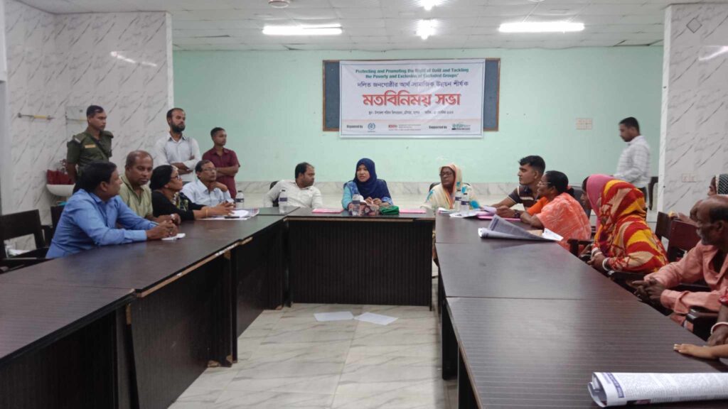শ্যামল দত্ত চৌগাছা (যশোর) থেকেঃ যশোরের চৌগাছায় দলিত জনগোষ্ঠীর আর্থ-সমাজিক উন্নয়ন শীর্ষক মতবিনিময় সভা অনুষ্ঠিত হয়েছে। বৃহস্পতিবার (২১ সেন্টেম্বার) দুপুর ১২ টার সময় উপজেলা পরিষদ মিলনায়তন মানবাধিকার সুরক্ষা ও সহায়তার মাধ্যমে দলিত ও সামাজিকভাবে বঞ্চিত জনগোষ্ঠীর দারিদ্র বিমোচন ও বিদ্যমান বৈষম্য লাঘব প্রকল্পের অধিনে নাগরিক উদ্যোগের সহযোগীতায় ও অশ্রমোচন মহিলা ও শিশু উন্নয়ন সংস্থার আয়োজনে অশ্রমোশন মহিলা ও শিশু উন্নয়ন সংস্থা সভাপতি রুপালী বিশ্বাসের সভাপতিত্বে প্রধান অতিথি হিসেবে উপস্থিত ছিলেন উপজেলা নির্বাহী অফিসার ইরুফা সুলতানা, বিশেষ অতিথি হিসেবে উপস্থিত ছিলেন উপজেলা মৎস অফিসার হরিদাস কুমার দেবনাথ, সমাজ সেবা অফিসার মেহেদী হাসান, যুব উন্নয়ন অফিসার সুভাষচন্দ্র চক্রবর্তী, মহুিলা বিষয়ক অফিসার আনজুমান আরা মাহমুদা,অশ্রুমোচন নারী ও শিশু উন্নয়ন সংস্থার নির্বাহী পরিচালক শোভা রানী বাড়ই এ ছাড়া অন্যান্যদের মধ্যে উপস্থত ছিলেন সাংবাদিক শ্যামল দত্ত,উপজেলা দলিত ও বঞ্চিত জনগোষ্ঠী অধিকার আন্দোলনের সভাপতি প্রকাশ চন্দ্র বিশ্বাস, অশ্রুমোচন শিশু নারী উন্নয়ন সংস্থার প্রগামার অফিসার নাসির উদ্দীন, , অশ্রমোচন সংস্থার কোর্ডিটার সুমিত্রা সরকার,আদিবাসী সংস্থার পক্ষ থেকে মিন্টু সরদার বিভিন্ন ইউনিয়ন থেকে আগত পিছিয়ে পড়াদলিত জনগোষ্ঠীর নেতৃবৃন্দ উপস্থিত ছিলেন।