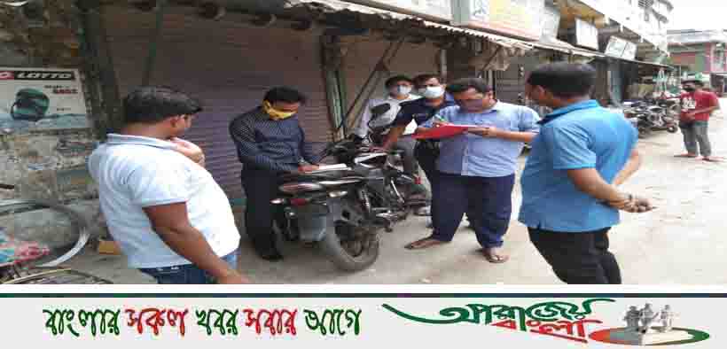 চৌগাছা(যশোর) প্রতিনিধিঃ যশোর চৌগাছায় লকডাউনের চতুর্থ দিনে ২মোটর সাইকেল আরোহীকে মুখে মাস্ক ও হেলমেন্ট না পরায় জরিমানা ও ১ টিচায়ের দোকানে স্বাস্থ্য বিধিমেনে চা না বেচায়জরিমানা করা হয়। উপজেলা নির্বাহী অফিসার কর্তৃক ভ্রাম্যামান আদালত পরিছালনা করেজরিমানা করেন।৮মার্চ রোজ বৃহস্পতিবার দুপুর ১২.৩০মিঃ থেকে ৩ টা পর্যন্তলকডাউনের চতুর্থ দিনে বাজারের মাস্ক পরিধানর জন্য স্বাস্থ্য বিধিমেনে নিত্য প্রয়োজনীয় বেচকেনা জন্য সচেতনতা করেন।মাস্ক ও হেলমেন্ট না পরায় সেতু আহমেদ(২৮) ৩০০/= টাকা ও অলিয়ার রহমান(২৮) ২০০/= টাকা,চায়ের দোকান শাহীন আলম(২৮) স্বাস্থ্য বিধি না মেনে চা বিক্রয় করায় ৫০০/=টাকা জরিমানা করেন।লকডাউনের চতুথ দিনে উপজেলা নির্বাহী অফিসার এনামুল হকের নেতৃত্বে উপস্থিত ছিলেন উপজেলা এল জি ডি কর্মকতা প্রকৌশলী মুনছুর রহমান,প্রকল্প বাস্তবায়ন অফিসার ইশতিয়াক আহমেদ প্রমুখ।