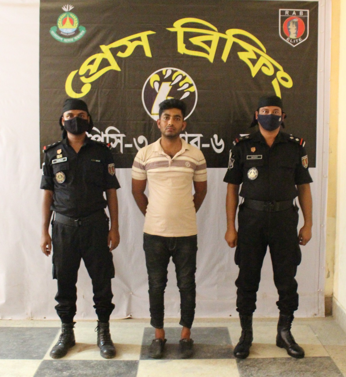 ২১/০৭/২০২২ তারিখ সময় রাত ০১.২০ ঘটিকায় র্যাব-৬, সিপিসি-৩, যশোর ক্যাম্পের একটি আভিযানিক দল গোপন সংবাদের ভিত্তিতে যশোর জেলার চৌগাছা থানাধীন ৬নং জগদ্বিসপুর ইউনিয়নের ৬নং ওয়ার্ডের আড়পাড়ায় অীভযান চালিয়ে ১ হাজার ৪৩০ পিচ ইয়াবা সহ ১ জন গ্রেফতার ১ জন মাদক ব্যবসায়ীকে গেস্খফতার করেছে। ধৃত আসামীর নাম আল আমিন বিশ^াস (২৫), পিতা- মোঃ আলী, মাতা- জোহরা বেগম, সাং- আড়পাড়া। আসামীকে যশোর জেলার চৌগাছা থানায় হস্তান্তর করতঃ ২০১৮ সনের মাদকদ্রব্য নিয়ন্ত্রন আইনের ৩৬ (১) এর সারনী ক্রমিক ১০ (ক) ধারায় মামলা রুজু করা হয়েছে।