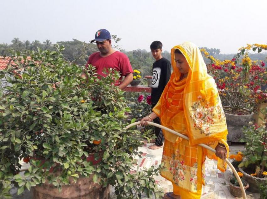 মিতুল-মিন্তি দম্পতি রাজধানীর কল্যাণপুরে নিজেদের বাসার ছাদে গড়ে তুলেছেন এমনই এক বাগান। ফল, ফুল, সবজি থেকে মসলা গাছও আছে। একশ’রও বেশি গাছ লাগিয়েছেন তারা। মাঝে মাঝেই তৃপ্তি করে খান ছাদবাগানের সবজি। তাদের মতে, চাইলে মাসের দশটা দিনই ছাদবাগানের সবজি দিয়ে চালিয়ে নেওয়া যায়।