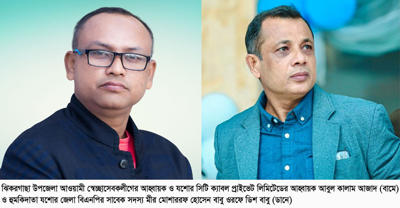 যশোর জেলা বিএনপির সাবেক সদস্য মীর মোশাররফ হোসেন বাবু ওরফে ডিশ বাবু কর্তৃক ঝিকরগাছা উপজেলা আওয়ামী স্বেচ্ছাসেবকলীগের আহ্বায়ক ও যশোর সিটি ক্যাবল প্রাইভেট লিমিটেডের আহ্বায়ক আবুল কালাম আজাদকে হুমকি দেওয়ার অভিযোগে উঠেছে। এই ঘটনায় শনিবার (২৪ জুন) জেলা বিএনপির সাবেক সদস্য মীর মোশাররফ হোসেন বাবু ওরফে ডিশ বাবুর বিরুদ্ধে ঝিকরগাছা থানায় সাধারণ ডায়েরী করেছেন ভুক্তভোগী আবুল কালাম আজাদ। অভিযুক্ত বাবু যশোর চুড়িপট্টি এলাকার মৃত মীর কামরে আলমের ছেলে।