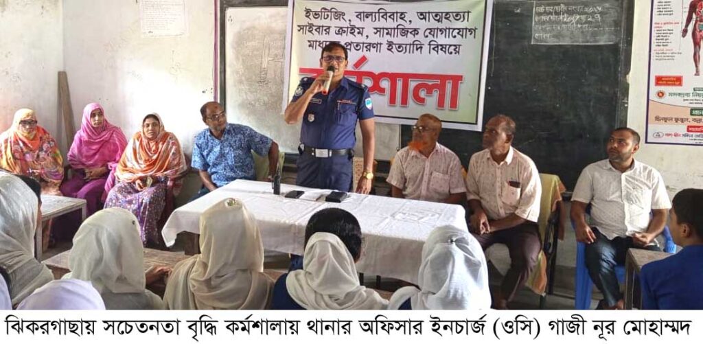 - আফজাল হোসেন চাঁদ, ঝিকরগাছা : যশোরের ঝিকরগাছায় সাইবার ক্রাইম, বিকাশে প্রতারণা, মাদক, বাল্যবিবাহ, ইভটিজিং ও আত্মহত্যার প্রবণতা প্রতিরোধে শিক্ষক ও শিক্ষার্থীদের অংশগ্রহণে এক সচেতনতামূলক কর্মশালায় প্রধান অতিথি ছিলেন থানার অফিসার ইনচার্জ (ওসি) গাজী নূর মোহাম্মদ। এ সময় তিনি তার বক্তব্যে বলেন, বর্তমান যুগে প্রযুক্তির অপব্যবহার অনেক ক্ষেত্রে অপরাধের জন্ম দিচ্ছে। শিক্ষার্থীদের উচিত সামাজিক যোগাযোগমাধ্যম ও মোবাইল ব্যাংকিং ব্যবহারে সতর্ক থাকা। পাশাপাশি মাদক, বাল্যবিবাহ ও ইভটিজিং সমাজ ধ্বংসের অন্যতম কারণ এগুলো প্রতিরোধে শিক্ষকরাই প্রথম ভূমিকা রাখতে পারেন।