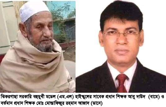 যশোরের ঝিকরগাছা সরকারি বহুমুখী মডেল (এম.এল) হাইস্কুলের সাবেক প্রধান শিক্ষক আবু দাউদ (৮৪) এর মৃত্যুতে বর্তমান প্রধান শিক্ষক মোঃ মোস্তাফিজুর রহমান আজাদ শোকাহত পরিবারের প্রতি প্রকাশ করেছেন। আবু দাউদ স্যার ১৯৭২ থেকে ১৯৯৯ সাল পর্যন্ত ঝিকরগাছা এম.এল. পাইলট হাই স্কুলের প্রধান শিক্ষকের দায়িত্বে ছিলেন। বর্তমান স্কুলটি সরকারি হয়ে নাম হয়েছে ঝিকরগাছা সরকারি বহুমুখী মডেল হাইস্কুল। তিনি দীর্ঘদিন যাবৎ নানা জটিল অসুস্থতায় ভুগছিলেন। মঙ্গলবার সন্ধ্যা ৭টা ৫০মিনিটের সময় নিজ বাসভবনে ইন্তেকাল করেন(ইন্নালিল্লাহি ওয়া ইন্না ইলাহি রাজিউন)। মৃত্যুকালে তিনি স্ত্রী, এক ছেলে ও দুই মেয়েসহ অসংখ্য গুণগ্রাহী রেখে গেছেন। বুধবার সকাল ৮টায় ঝিকরগাছা বদরুদ্দীন মুসলিম (বিএম) হাইস্কুল মাঠে জানাজার নামাজ শেষে পারিবারিক গোরস্থানে চিরো সমাহিত করা হয়েছে।
