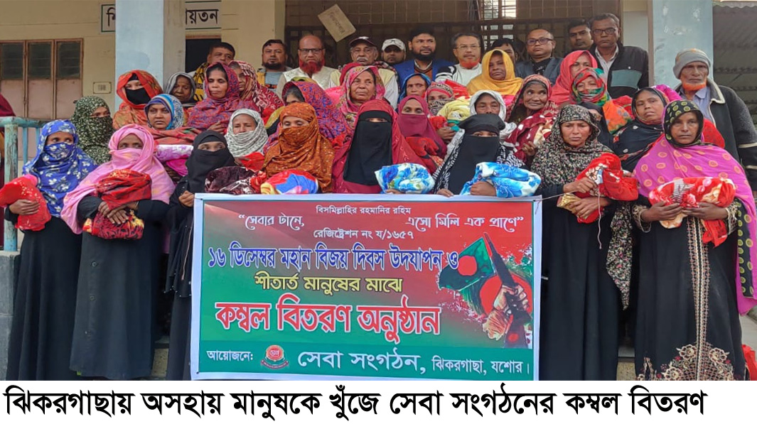 যশোরের ঝিকরগাছায় অসহায় মানুষকে খুঁজে অরাজনৈতিক স্বেচ্ছাসেবী সংগঠন সেবা’র পক্ষ হতে কম্বল বিতরণ করা হয়েছে। শনিবার বিকালে উপজেলার মোড়স্থ দারুল উলুম কামিল মাদ্রাসা হলরুমে সেবা সংগঠনের দাতা সদস্যদের নিজস্ব অর্থায়নে এই কম্বলগুলো গ্রহীতাদের হাতে তুলে দেওয়া হয়। অনুষ্ঠানে সেবা’র প্রতিষ্ঠাতা ও সভাপতি মাস্টার আশরাফুজ্জামান বাবুর সভাপতিত্বে প্রধান অতিথি ছিলেন বিশ্ববিখ্যাত উপন্যাসিক, সেবা সংগঠনের প্রধান উপদেষ্টা হোসেনউদ্দীন হোসেন। বিশেষ অতিথি হিসেবে উপস্থিত ছিলেন বিশিষ্ট সমাজ সংস্কারক মীর ফারুখ আহম্মদ, সাদা মনের মানুষ সায়েদ আলী, সেবা সংগঠনের সহ সভাপতি আলীশাহ, যুগ্ম সাধারণ সম্পাদক আবুল কালাম আজাদ, অর্থ বিষয়ক সম্পাদক সাংবাদিক আফজাল হোসেন চাঁদ, কার্যকরী সদস্য আশিকুল ইসলাম, মাসুম বিল্লাহ, রায়হান সরদার, হাসান খান, আজাদ হোসেন, ইসমাইল হোসেন, স্বেচ্ছাসেবক ফারুক হোসেন, সাদেক আলী, শিহাবুল ইসলাম সোহাগ, নাজমুল হোসেন, ধারাভাষ্যকর আবু রায়হান রাজ সহ আরও অনেকে।