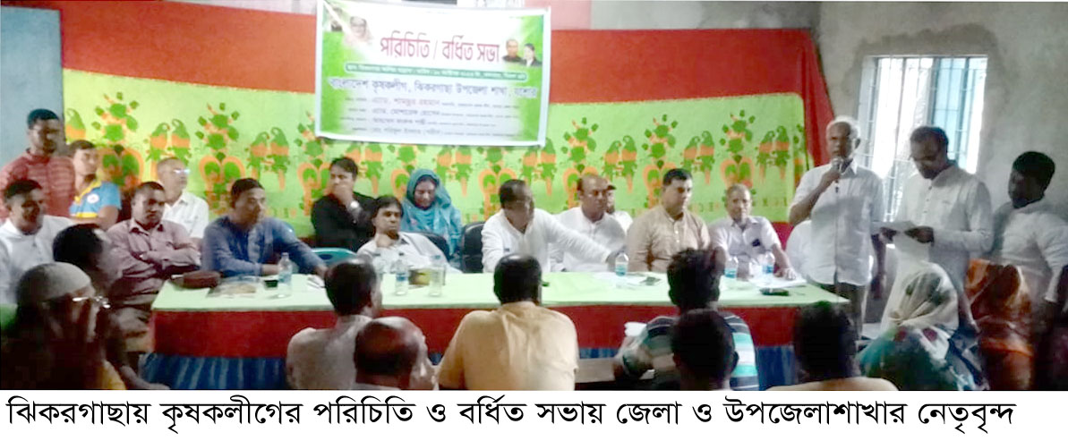 মঙ্গলবার বিকাল সাড়ে ৪টার সময় উপজেলা মোড়স্থ ঝিকরগাছা দারুল উলুম কামিল মাদ্রাসার হলরুমের অনুষ্ঠানে বাংলাদেশ কৃষকলীগের ঝিকরগাছা উপজেলা শাখার সভাপতি আহম্মেদ ফারুক শান্তীর সভাপতিত্বে ও সাধারণ সম্পাদক মোঃ শরিফুল ইসলাম শরীফের সঞ্চালনায় প্রধান অতিথি ছিলেন, বাংলাদেশ কৃষকলীগের যশোর জেলা শাখার সভাপতি এ্যাড. শামছুর রহমান। প্রধান বক্তা ছিলেন, বাংলাদেশ কৃষকলীগের যশোর জেলা শাখার সাধারণ সম্পাদক এ্যাড. মোশারেফ হোসেন। বিশেষ অতিথি ছিলেন, জেলা কমিটির সহ সভাপতি বীর মুক্তিযোদ্ধা দেলোয়ার হোসেন রাঞ্জু, যুগ্ম সম্পাদক ফয়েজ আলম মনির, আনোয়ারুল ইসলাম, সাংগঠনিক সম্পাদক শেখ আসাদুজ্জামান, মহিলা সম্পাদক শামীমা সুলতানা ঝুমুর, ত্রাণ ও সমাজ কল্যাণ সম্পাদক তবিবুর রহমান খান, সহ দপ্তর সম্পাদক কামরুজ্জামান মিলন, সদস্য আবুল কালাম আজাদ, মোস্তফা কামাল, গোলাম মোস্তফা, জিয়া উদ্দীন রঞ্জু,বাংলাদেশ কৃষকলীগের ঝিকরগাছা উপজেলা শাখার সহ-সভাপতি নিছার আলী, যুগ্ম সম্পাদক শাহিন কবির, সাংগঠনিক সম্পাদক কলিম হোসেন বাবু, অর্থ সম্পাদক ইমান আলী, প্রচার সম্পাদক সাজ্জাদুল ইসলাম সাজু, আরশাদুল ইসলাম, দপ্তর সম্পাদক ফয়েজ মজনু, জোহন সরকার, তথ্য ও গবেষণা সম্পাদক সহিদুল ইসলাম, সমবায় সম্পাদক জামাল হোসেন, কুঠির শিল্প বিষয়ক সম্পাদক জাহাঙ্গীর আলম, স্বাস্থ্য ও পরিবার সম্পাদক ফিরোজ উদ্দীন, মৎস্য ও পশু বিষয়ক সম্পাদক গণেশ চন্দ্র, কৃষিপণ্য বিষয়ক সম্পাদক শফিকুল ইসলাম, কৃষি ঋন বিষয়ক সম্পাদক জাহাঙ্গীর আলম, মহিলা বিষয়ক সম্পাদক শিল্পী খাতুন, নাহিদ আক্তার, স্থানীয় সরকার বিষয়ক সম্পাদক শফিকুল ইসলাম, ত্রাণ ও সমাজকল্যাণ সম্পাদক মোস্তাফিজুর রহমান লাল্টু, সাংস্কৃতিক সম্পাদক জিয়াউর রহমান জিয়াসহ আরো অনেকে।