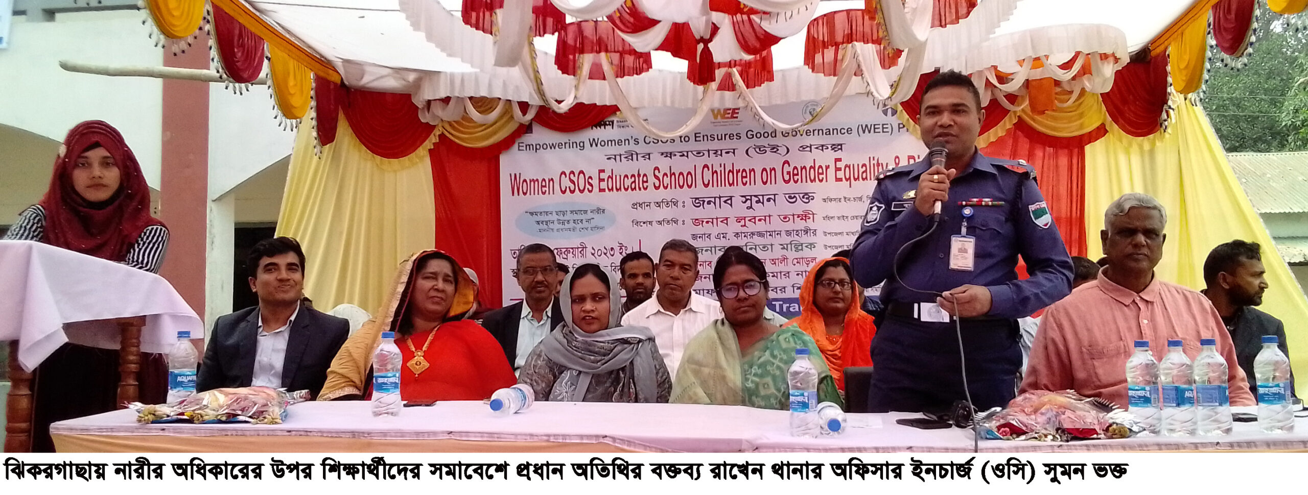 যশোরের ঝিকরগাছা উপজেলায় নারীর অধিকারের উপর শিক্ষার্থীদের জন সমাবেশ অনুষ্ঠিত হয়েছে। ইউরোপিয়ান ইউনিয়ন, ট্রেইডক্রাফট এক্সচেঞ্জের অর্থায়নে এবং উলাসী সৃজনী সংঘ ও বিকাশ বাংলাদেশের বাস্তবায়নে গদখালী ইউনিয়নের এফজেইউবি মাধ্যমিক বিদ্যালয় প্রাঙ্গণে বুধবার (০৮ ফেব্রæয়ারি) দুপুর ১২টার সময় মহিলা সিএসওএস স্কুলে জেন্ডার সমতা ও নারী অধিকার বিষয়ক সচেতনতা বৃদ্ধির লক্ষ্যে শিক্ষার্থীদের জন সমাবেশে প্রধান অতিথি ছিলেন থানার অফিসার ইনচার্জ (ওসি) সুমন ভক্ত।
