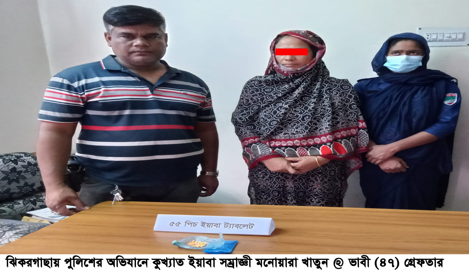 যশোরের ঝিকরগাছা থানা পুলিশের অভিযানে কুখ্যাত মাদক সম্রাজ্ঞী মনোয়ারা খাতুন @ ভাবী (৪৭) ৫৫ (পঞ্চান্ন) পিচ ইয়াবা ট্যাবলেটসহ গ্রেফতার হয়েছে। তিনি থানাধীন মনোহরপুর (পশ্চিমপাড়া) গ্রামের অলিয়ার রহমান স্ত্রী।