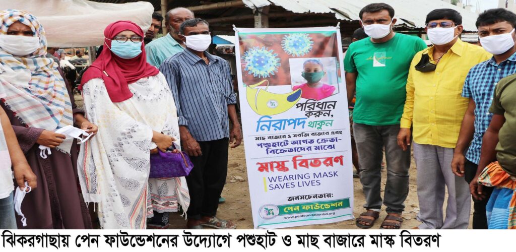 ঝিকরগাছায় পেন ফাউন্ডেশনের উদ্যোগে পশুহাট ও মাছ বাজারে মাস্ক বিতরণ