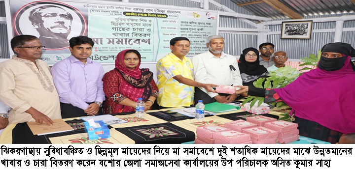 যশোরের ঝিকরগাছায় স্বেচ্ছাসেবী সংস্থা পেন ফাউন্ডেশনের আয়োজনে জাতির পিতা বঙ্গবন্ধু শেখ মুজিবুর রহমানের ৪৭তম শাহাদৎ বার্ষিকী ও জাতীয় শোক দিবস উপলক্ষ্যে সুবিধাবঞ্চিত শিশু ও তাদের অভিভাবক এবং ছিন্নমূল মায়েদের নিয়ে মা সমাবেশ অনুষ্ঠিত হয়েছে। উক্ত সমাবেশের মাধ্যমে দুই শতাধিক মায়েদের মাঝে উন্নতমানের খাবার ও বিভিন্ন প্রজাতির ফলজ, বনজ, ওষুধি ও বিলতী খেজুরের চারা বিতরণ করা হয়। যশোর জেলার শ্রেষ্ঠ যুব সংগঠন পেন ফাউন্ডেশনের মাধ্যমে পরিচালিত স্বপ্নলোকের পাঠশালার ২য় ক্যাম্পাস মোবারকপুরে বুধবার সকাল ১১টার সময়ের মা সমাবেশে প্রধান অতিথি ছিলেন যশোর জেলা সমাজসেবা কার্যালয়ের উপ পরিচালক অসিত কুমার সাহা। তিনি উপস্থিত মায়েদের উদ্দেশ্যে বলেন, আজকের শিশু আগামী দিনের ভবিষৎ। আপনারা আপনাদের শিশুদের জাতির পিতা বঙ্গবন্ধু শেখ মুজিবুর রহমান, আমাদের স্বাধীনতা, মহান মুক্তিযুদ্ধ, দেশের উন্নয়ন, মাননীয় প্রধানমন্ত্রী শেখ হাসিনা ও মা-মাটির কথা গল্প করে শোনাবেন। তারা সমৃদ্ধ হবে এবং দেশ ও জাতির কল্যাণে আত্ম নিয়োগ করতে পারবে। পেন ফাউন্ডেশনের নির্বাহী পরিচালক মেঘনা ইমদাদ এর সভাপতিত্বে অনুষ্ঠানে প্রধান আলোচক ছিলেন ঝিকরগাছা উপজেলা পরিষদের মহিলা ভাইস চেয়ারম্যান লুবনা তাক্ষী। বিশেষ অতিথি ছিলেন ঝিকরগাছা উপজেলা সমাজসেবা অফিসার মেজবাহ উদ্দীন, উপজেলা যুব উন্নয়ন অফিসার মোঃ আরব আলী, বাঁকড়া ডিগ্রী কলেজের অধ্যক্ষ মোঃ সামছুর রহমান, বিশিষ্ট সাহিত্যিক ও পেন ফাউন্ডেশনের সভাপতি মোঃ সফিয়ার রহমান, উপজেলা ডেভেলপমেন্ট ফ্যাসিলিলেটর দুলাল পদ দেবনাথ, বৃক্ষপ্রেমিক মোকাররম হোসেন, পেন ফাউন্ডেশনের প্রোগ্রাম ম্যানেজার আয়ুব হোসেন, হিসাবরক্ষক রত্না ইসলাম, স্বপ্নলোকের পাঠশালার শিক্ষক বিথী খাতুন, স্বেচ্ছাসেবক শান্তাহার মিথি, আকলিমা খাতুন, সোহেল রানা, বাবু, রাজা, আকাশ ও রোহান ইসলাম প্রমুখ। অনুষ্ঠান সঞ্চালনা করেন পেন ফাউন্ডেশনের সমন্বয়কারী রিজন বিশ্বাস।