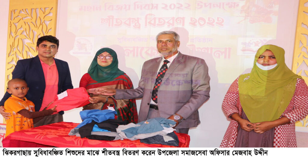 যশোরের ঝিকরগাছায় পেন ফাউন্ডেশন কর্তৃক পরিচালিত সুবিধাবঞ্চিত শিশুদের শিক্ষা প্রতিষ্ঠান স্বপ্নলোকের পাঠশালার শিশু শিক্ষার্থীদের মাঝে শীতবস্ত্র বিতরণ করা হয়েছে। বিজয় দিবসের আনন্দ ভাগ করে নিতে স্বপ্নলোকের পাঠশালার দু’টি ক্যাম্পাসের সর্বমোট ৭০জন শিক্ষার্থীদের পেন ফাউন্ডেশনের অর্থায়নে শীতবস্ত্র বিতরণ অনুষ্ঠানে প্রধান অতিথি ছিলেন উপজেলা সমাজসেবা অফিসার মেজবাহ উদ্দীন। পেন ফাউন্ডেশনের নির্বাহী পরিচালক মেঘনা ইমদাদ’র সভাপতিত্বে বিশেষ অতিথি ছিলেন উপজেলা যুব উন্নয়ন অফিসার মোঃ আরব আলী, পেন ফাউন্ডেশনের প্রোগ্রাম কোঅর্ডিনেটর আলফ্রেড মন্ডল, স্বপ্নলোকের পাঠশালার সহকারী শিক্ষক রতœা ইসলাম ও বিথী খাতুন প্রমুখ। অনুষ্ঠানের সভাপতি মেঘনা ইমদাদ বলেন, প্রতিবছরের ন্যায় এবারও সুবিধাবঞ্চিত শিশু, ছিন্নমূল মানুষদের মাঝে শীতবস্ত্র ও কম্বল বিতরণ কার্যক্রম অব্যাহত থাকবে। তিনি সকলের সহযোগিতা কামনা করেন।