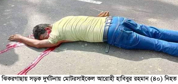 যশোর বেনাপোল মহাসড়কে ঝিকরগাছার নবীবনগর প্রাথমিক বিদ্যালয়ের সামনে সড়ক দুর্ঘটনায় হাবিবুর রহমান (৪০) নামে এক মোটরসাইকেল আরোহী নিহত হয়েছে। তিনি পার্শ্ববর্তী শার্শা উপজেলার পুটখালী গ্রামের মোঃ তবি মোড়লের ছেলে।