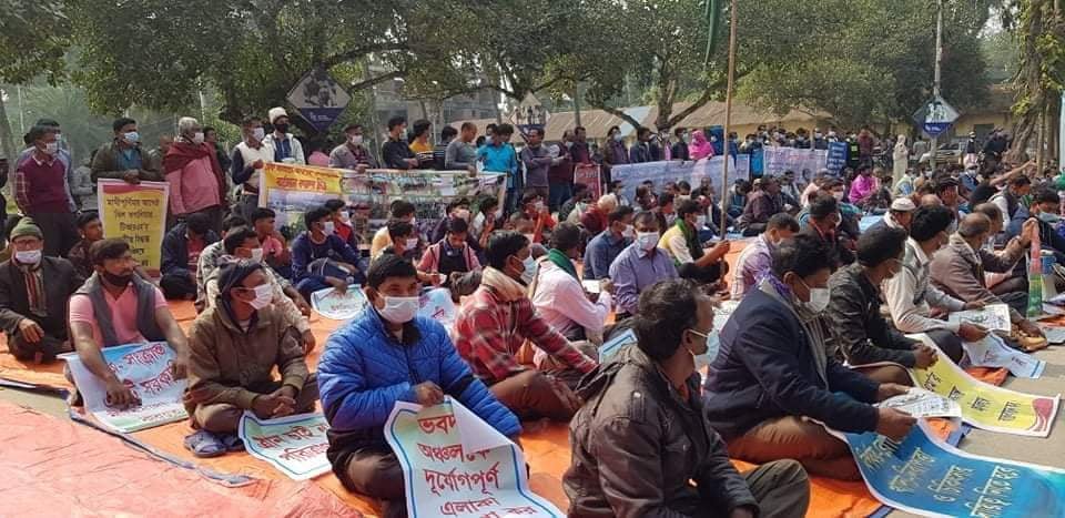 বুধবার (১২ জানুয়ারি) দুপুরে ভবদহবাসী মিছিল সহকারে জেলা প্রশাসক কার্যালয়ের সামনে পৌঁছান। এ সময় পানি সরিয়ে জীবন বাঁচানোর স্লোগান দেওয়া হয়।