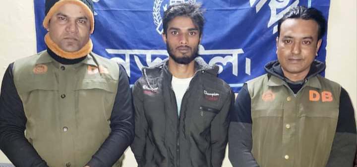 নড়াইলে ডিবি পুলিশের অভিযানে ৩০০ গ্রাম গাঁজাসহ একজন গ্রেফতার। মাদক ব্যবসায়ের সাথে জড়িত শিহাব মোল্যা (২৫) নামের ০১জন মাদক কারবারিকে গ্রেফতার করেছে নড়াইল জেলা গোয়েন্দা শাখা পুলিশ। গ্রেফতারকৃত শিহাব মোল্যা (২৫) নড়াইল জেলার সদর থানার ডাংগাসিংগা গ্রামের মোঃ গফ্ফার মোল্যার ছেলে। সোমবার (১৫ জানুয়ারি) রাতে নড়াইল সদর থানাধীন হবখালি ইউনিয়নের ডাংগাসিংগা গ্রামের জাহাঙ্গীর এর ভাড়াটিয়া গফ্ফার মোল্যার ভাই ভাই ভাতের হোটেলের সামনে থেকে তাকে আটক করা হয়। গোপন সংবাদের ভিত্তিতে নড়াইল জেলা গোয়েন্দা শাখার অফিসার ইনচার্জ মোঃ ছাব্বিরুল আলম এর তত্ত্বাবধানে এসআই (নিঃ) মোঃ ফারুক হোসেন, এএসআই (নিঃ) আনিসুজ্জামান, এএসআই (নিঃ) মাহফুজুর রহমান সঙ্গীয় ফোর্সসহ অভিযান চালিয়ে শিহাব মোল্যা (২৫) কে গ্রেফতার করে। এ সময় ধৃত আসামির নিকট থেকে তিনশত গ্রাম গাঁজা জব্দ করা হয়। এ সংক্রান্তে নড়াইল সদর থানায় মাদকদ্রব্য নিয়ন্ত্রণ আইনে একটি মামলা রুজু করা হয়েছে। আসামিকে বিজ্ঞ আদালতে সোপর্দ করা হয়েছে। নড়াইল জেলা পুলিশ সুপার মোহাঃ মেহেদী হাসান নির্দেশনায় মাদকমুক্ত নড়াইল গড়ার লক্ষ্যে জেলা পুলিশ আন্তরিকভাবে কাজ করে যাচ্ছে।