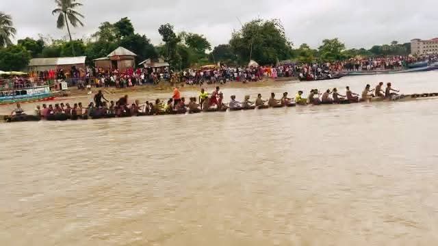 নড়াইলের লোহাগড়ায় শারদীয় দুর্গাপূজা উপলক্ষে মধুমতি নদীতে প্রাণবন্ত পরিবেশে অনুষ্ঠিত গ্রামবাংলার লোকজ ঐতিহ্যের অন্যতম নিদর্শন ঐতিহ্যবাহী নৌকাবাইচ প্রতিযোগিতা দেখতে হাজারো মানুষের ঢল।