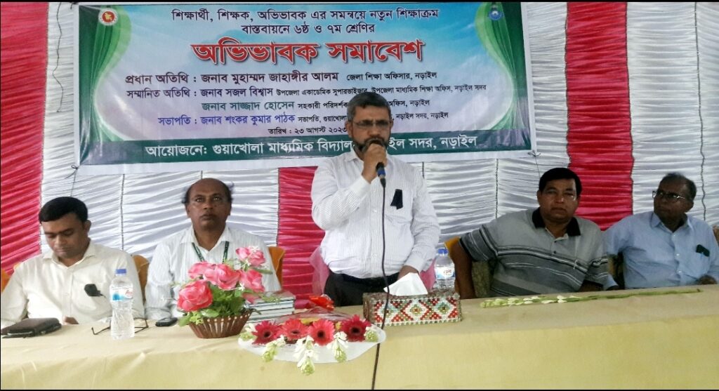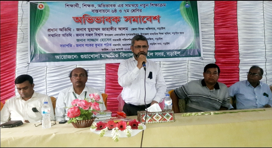 ষষ্ঠ ও সপ্তম শ্রেণিতে নতুন শিক্ষাক্রম সম্পর্কে নড়াইলে শিক্ষক, শিক্ষার্থী ও অভিভাবক সমাবেশ অনুষ্ঠিত হয়েছে। নড়াইল সদরের গুয়াখোলা মাধ্যমিক বিদ্যালয়ের আয়োজনে বুধবার (২৩ আগস্ট) দুপুরে বিদ্যালয় মিলনায়তনে এ সমাবেশ অনুষ্ঠিত হয়।