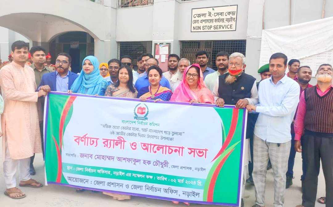 সঠিক তথ্যে ভোটার হবো, স্মার্ট বাংলাদেশ গড়ে তুলবো এ প্রতিপাদ্যকে সামনে নিয়ে নড়াইলে নানা আয়োজনে পালিত হয়েছে জাতীয় ভোটার দিবস।