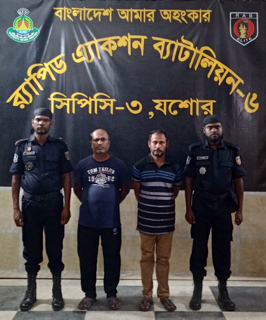 ব্যাটালিয়ন র্যাব-৬ (যশোর) এর সদস্যরা। গ্রেফতারকৃতরা হলো ওই গ্রামের