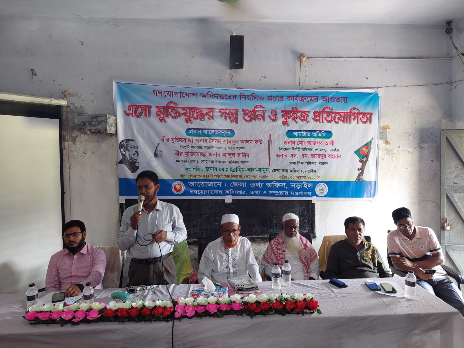 নড়াইলে বীর মুক্তিযোদ্ধারা স্কুলের শিক্ষার্থীদের শোনালেন যুদ্ধকালীন গল্প। জেলা তথ্য অফিস, নড়াইল কর্তৃক ৩১ অক্টোবর ২০২২ তারিখে সকাল ১১ ঘটিকায় গণযোগাযোগ অধিদপ্তরের নিয়মিত প্রচার কার্যক্রমের আওতায় সামাজিক দূরত্ব বজায় রেখে নড়াইল লোহাগড়া উপজেলার লোহাগড়া পাইলট মাধ্যমিক বিদ্যালয়ে ‘এসো মুক্তিযুদ্ধের গল্প শুনি’ অনুষ্ঠান আয়োজন করা হয়।