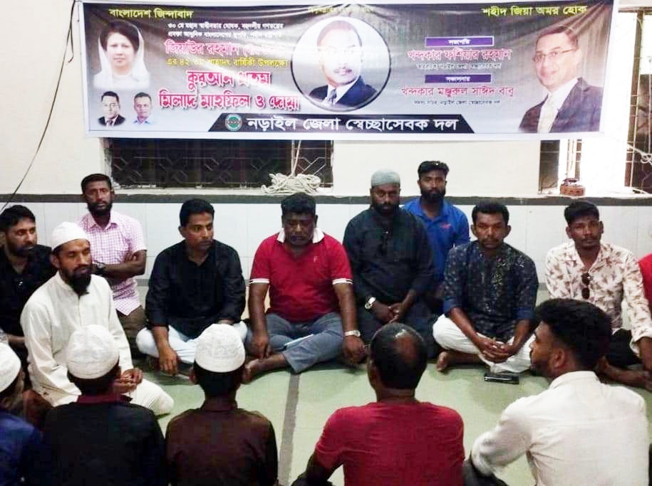 নড়াইলে শহীদ রাষ্ট্রপতি জিয়াউর রহমান বীর উত্তম এর ৪২-তম শাহাদৎ বার্ষিকী উপলক্ষে আলোচনাসভা, কুরআন খতম ও মিলাদ মহাফিল অনুষ্ঠিত হয়েছে।