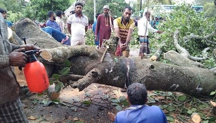 নড়াইলে সিত্রাংয়ের প্রভাবে বটগাছ উপড়ে রাস্তায় ১৯ ঘন্টা পর যান চলাচল স্বাভাবিক।