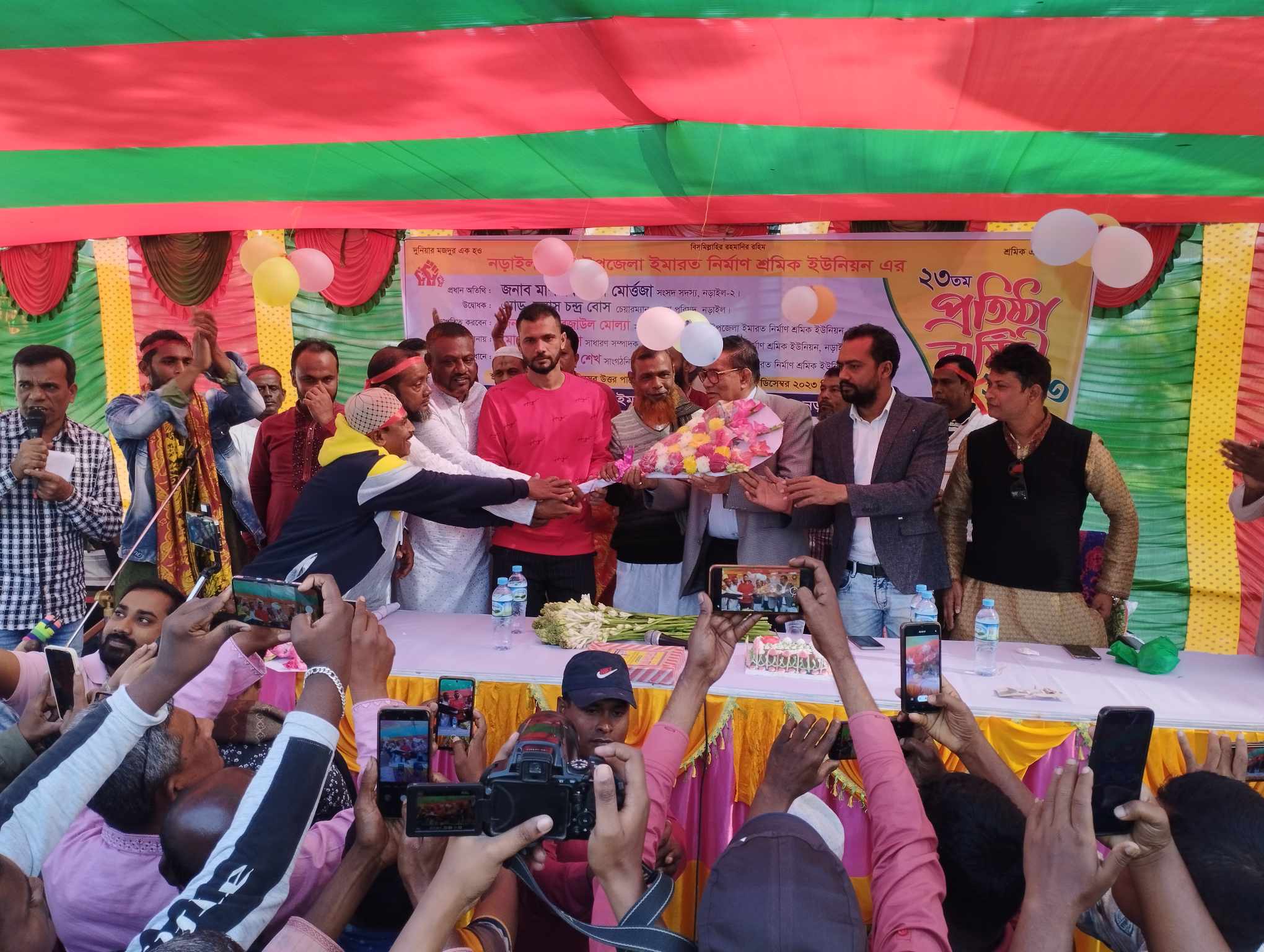 নড়াইল সদর উপজেলা ইমারত নির্মাণ শ্রমিক ইউনিয়নের ২৩তম প্রতিষ্ঠাবার্ষিকী পালিত হয়েছে।দিবসটি পালন উপলক্ষে শুক্রবার বেলা ১১টায় শহরের দুর্গাপুরে আলোচনাসভা অনুষ্ঠিত হয়।আলোচনা সভায় প্রধান অতিথি ছিলেন নড়াইল-২ আসনের সংসদ সদস্য মাশরাফী বিন মোর্ত্তজা।