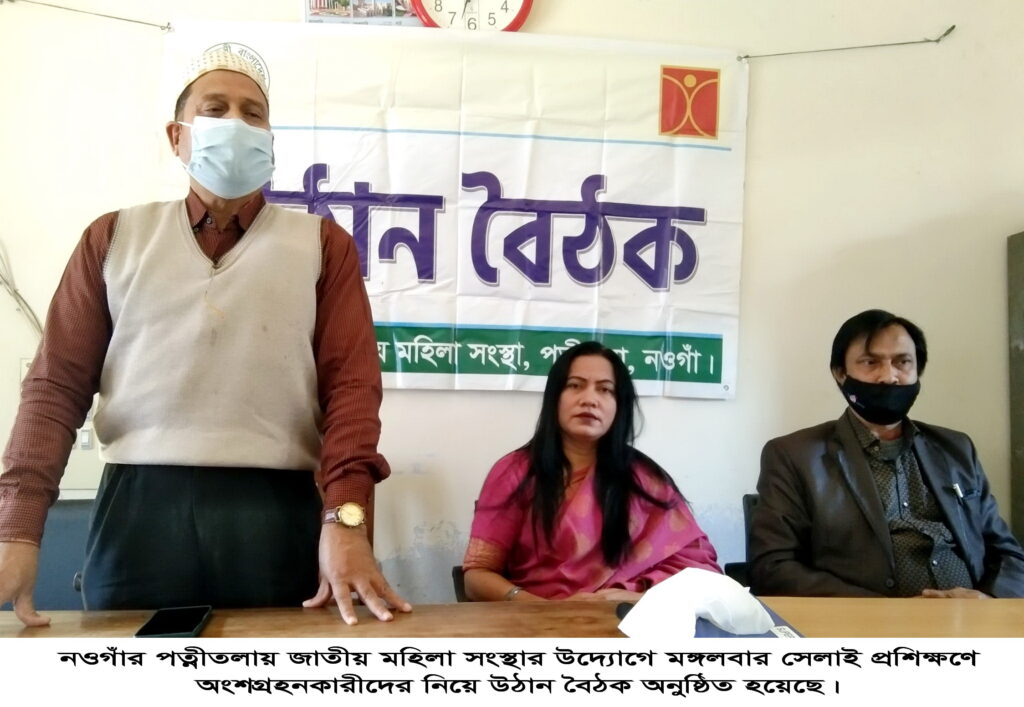 পত্নীতলায় জাতীয় মহিলা সংস্থার উদ্যোগে মঙ্গলবার উপজেলা পরিষদে জাতীয় মহিলা সংস্থার কার্যালয়ে সেলাই প্রশিক্ষণে অংশগ্রহনকারীদের নিয়ে উঠান বৈঠক অনুষ্ঠিত হয়েছে।