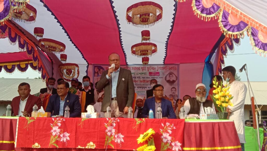 স্টাফ রিপোর্টার: যশোর মনিরামপুর উপজেলার ১১ নং চালুয়াহাটী ইউনিয়ন পরিষদের সাবেক সফল চেয়ারম্যান মরহুম হাকিম সরদার স্মৃতি সংসদ ফুটবল টুনামেন্টের ফাইনাল খেলার উদ্ভাধন করেন প্রধান অতিথি বাংলাদেশ সরকারের পল্লীউন্নয়ন ও সমবায় প্রতিমন্ত্রী স্বপন ভট্টাচার্য এমপি।টুনামেন্ট কমিটির সভাপতি শেখ মিজানুর রহমানের সভাপতিত্বে রোকনুজ্জামান তুহিনের পরিচালনায় শয়লা হাট মাধ্যমিক বিদ্যালয় মাঠে বিকাল তিনটায় আনুষ্ঠানিক ভাবে খেলাটি শুরু হয়। টুনামেন্ট উদ্ভাবনের আগে সংক্ষিপ্ত আলোচনায় প্রধান অতিথি পল্লী উন্নয়ন ও সমবায় মন্ত্রী বলেন আব্দুল হাকিম সরদার ছিলেন এই ইউনিয়নে আওয়ামী লীগের একমাত্র নেতা যিনি বিএনপির সকল ঘাত প্রতিঘাতের মাঝে থেকে আওয়ামী লীগ কে শক্তিশালী করে তুলেন।বিশেষ অতিথি হিসেবে উপস্থিত ছিলেন উপজেলা আওয়ামী লীগের সভাপতি কাজী মাহামুদুল হাসান,চেয়ারম্যান আ হামিদ সরদার, মাষ্টার আমির আলী, চেয়ারম্যান মনিরুজ্জামান মনি,চেয়ারম্যান সামছুল হক মন্টু, চেয়ারম্যান আ হক, উপজেলা কৃষক লীগের সাধারণ সম্পাদক আবুল ইসলাম প্রমূখ।উক্ত ফুটবল টুনামেন্টটির