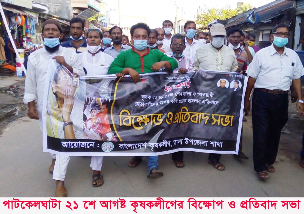 পাটকেলঘাটায় তালা উপজেলা কৃষকলীগের উদ্যোগে ২০০৪ সালের ২১ শে আগষ্ট জননেত্রী শেখ হাসিনা সহ আওয়ামীলীগের নেতাকর্মীদের উপর বর্বর গ্রেনেড হামলার প্রতিবাদে বিক্ষোভ র্যালী ও প্রতিবাদ সভা অনুষ্ঠিত হয়েছে। শনিবার ২১ শে আগষ্ট বিকাল ৪ টায় এ উপলক্ষে সাতক্ষীরা জেলা কৃষকলীগের সভাপতি বিশ্বজিৎ সাধুর পাটকেলঘাটাস্থ কার্যালয় থেকে একটি বিক্ষোভ র্যালী বের হয়ে পাটকেলঘাটার প্রধান প্রধান সড়ক প্রদক্ষিন করে। পরবর্তীতে র্যালীটি পাটকেলঘাটা পাঁচ রাস্তার মোড়ে একটি পথ সভায় রুপান্তরিত হয়।
