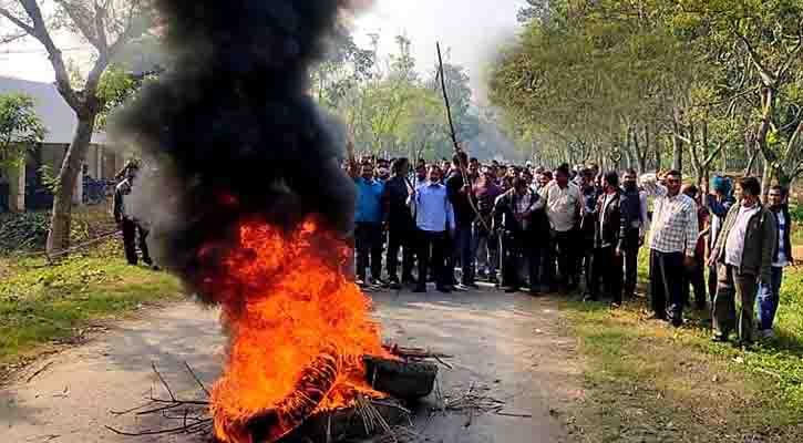 টায়ারে আগুন জ্বালিয়ে বিক্ষোভ