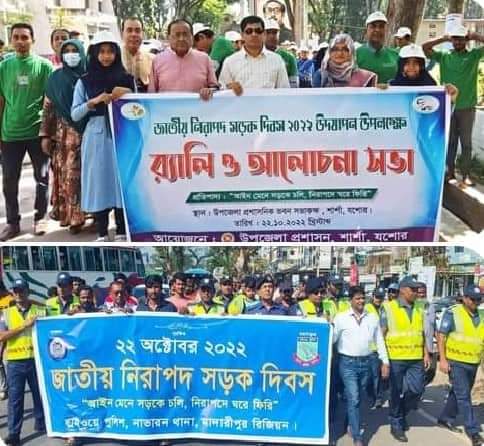 “আইন মেনে সড়কে চলি, নিরাপদে ঘরে ফিরি” এই প্রতিপাদ্যে ধারন করে যশোরের শার্শায় জাতীয় নিরাপদ সড়ক দিবস-২০২২ উদযাপন উপলক্ষে র্যালী ও আলোচনা সভা অনুষ্ঠিত হয়েছে।