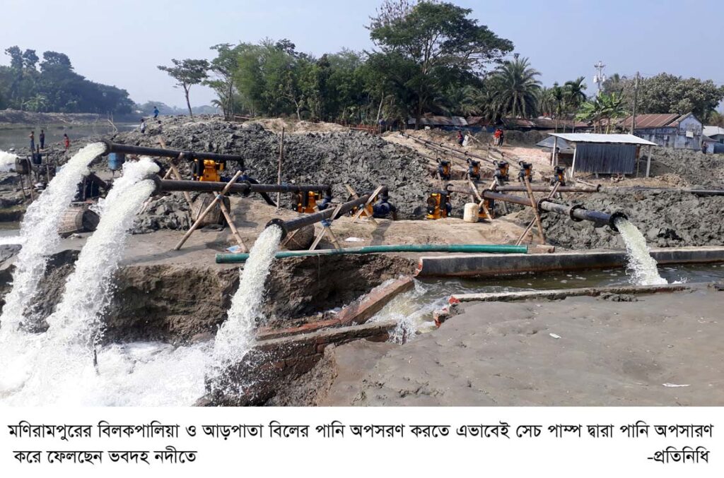 তাই এবার বোরো আবাদ করতে পানি উন্নয়ন বোর্ডের প্রতি অপেক্ষা না করে ভিন্নপথ হিসেবে নিজেরা নিজেদের অর্থায়নে বিলের পানি অপসারণ করে বোরো আবাদে সিদ্ধান্ত নেওয়া হচ্ছে। এ উদ্যোক্তা আরো জানায়, এ দু’বিলের মালিকদের কাছ থেকে পানি সেচ বাবদ ১ হাজার টাকা করে নেওয়া হচ্ছে। এতে জনগণ স্বর্তস্ফুত ভাবে এগিয়ে এসেছে এ কাজের সহযোগিতা করতে।