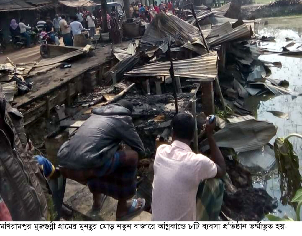 অপর দিকে শুক্রবার রাত একটার দিকে উপজেলার মুজগুন্নী গ্রামের মুনছুর মোড় নতুন বাজারে ৮টি ব্যবসা প্রতিষ্ঠানে অগ্নিকান্ডের ঘটনা ঘটে। ক্ষতিগ্রস্ত ব্যবসা প্রতিষ্ঠানের মালিকরা হলেন, ফিরোজ হোসেন ও কবির হোসেনের চায়ের দোকান, হাফেজ আসাদের মুদি দোকান, আসাদের কম্পিউটারের দোকান, পল্লী ডাক্তার বাবুল আক্তারের দোকান, শরিয়াতুল্ল্যহর খাবারের হোটেল, বশির উদ্দিনের কাঁচা তরকারীর দোকান ও মশিয়ারের সাইকেল গ্যারেজ। এছাড়া দিন ভোর রাতে পৌর শহরের তাহেরপুর গ্রামীণ ব্যাংকের সামনে ভুট্রো সাইকেল স্টোর এন্ড সার্ভিসিং সেন্টারে অগ্নিকান্ডের ঘটনা ঘটে। ক্ষতিগ্রস্ত প্রতিষ্ঠানের মালিক আবু দাউদ ভুট্রো জানান, অগ্নিকান্ডে ভম্মীভুত হয়ে তার প্রায় দেড় লাখ টাকার ক্ষতি হয়েছে।