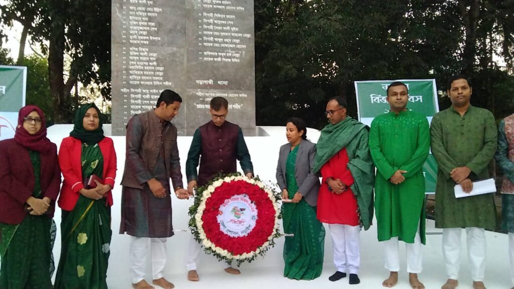 নড়াইলে যথাযোগ্য মর্যাদা ও ভাবগাম্ভীর্যেও মধ্যদিয়ে মহান বিজয় দিবস পালিত হয়েছে। এ উপলক্ষ্যে মঙ্গলবার (১৬ ডিসেম্বর) সূর্যোদয়ের সাথে সাথে ৩১ বার তোপধ্বনির মাধ্যমে দিবসের সূচনা করা হয়। এরপর জেলা প্রশাসনের উদ্যোগে নড়াইল জেলা শিল্পকলা একাডেমি চত্বরে অবস্থিত শহীদ স্মৃতিস্তম্ভে জেলা প্রশাসন, পুলিশ প্রশাসন, মুক্তিযোদ্ধা সংসদ, বিভিন্ন সরকারি-বেসরকারি দপ্তর, রাজনৈতিক দল, সামাজিক ও সাংস্কৃতিক সংগঠন এবং শিক্ষা প্রতিষ্ঠানের পক্ষ থেকে শ্রদ্ধাঞ্জলি জানানো হয়।
